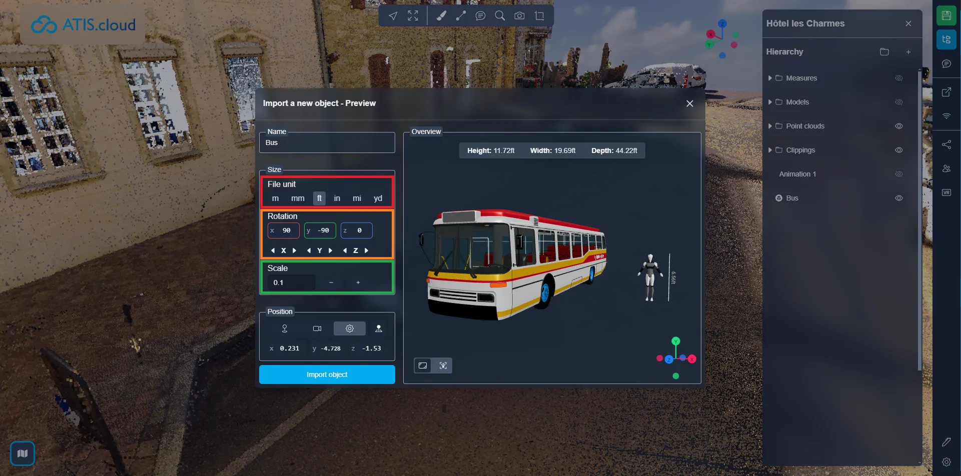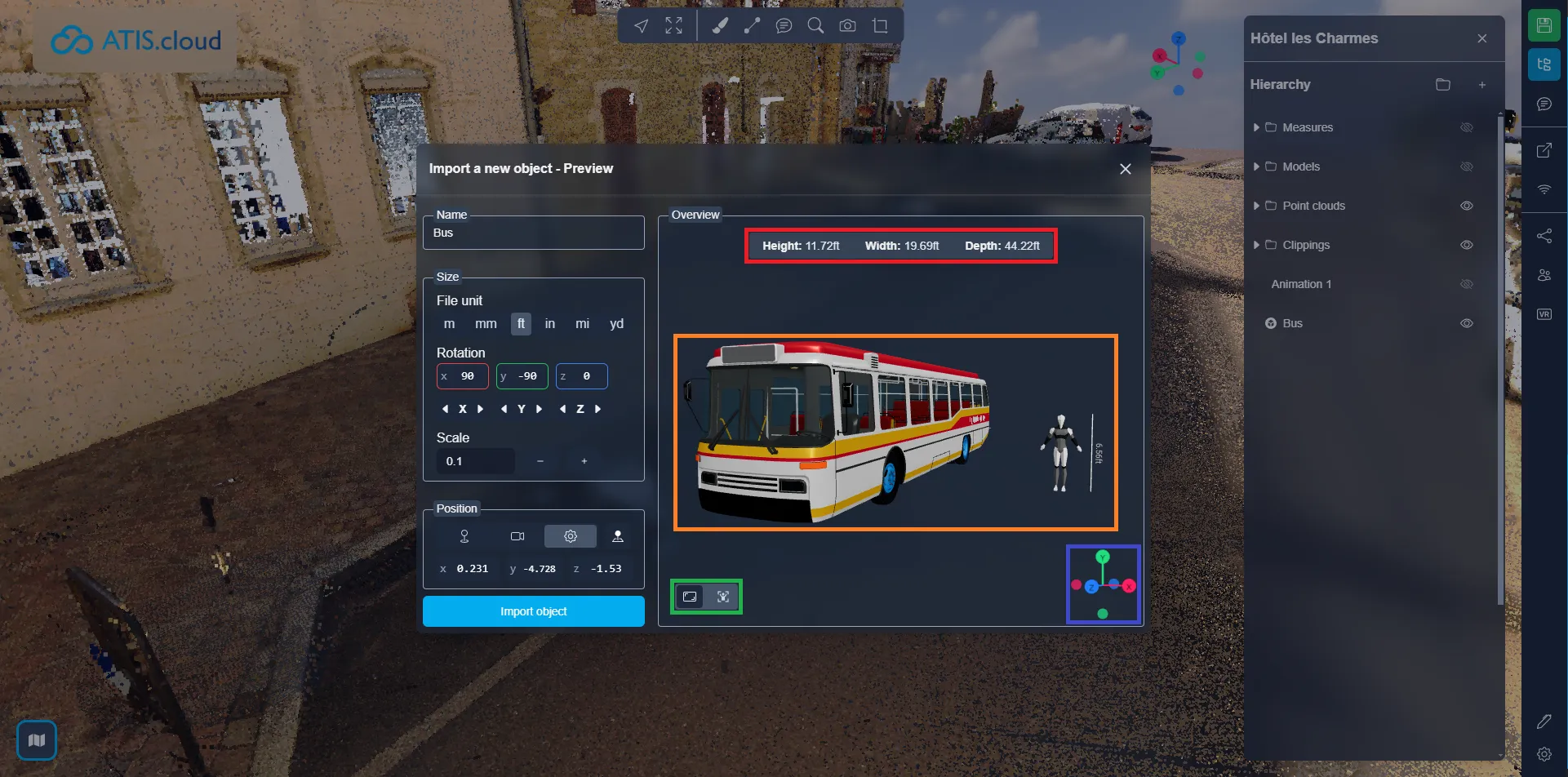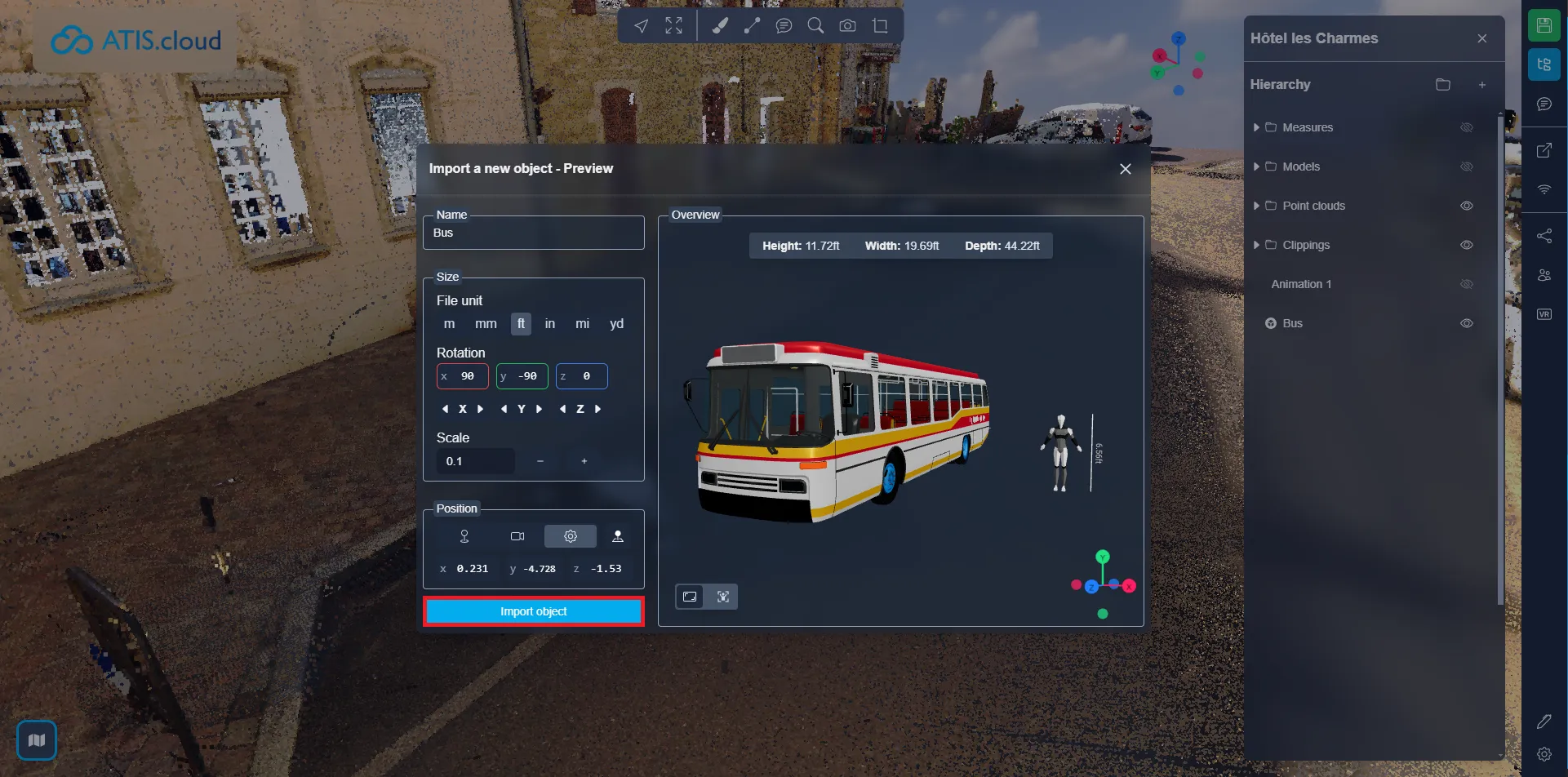 بمجرد أن تكون جاهزًا، انقر على "استيراد الكائن" لا تقلق، لا يزال بإمكانك تغيير موضع الكائن وزاويته وحجمه، حتى اسمه، بعد استيراده. يمكنك اتباع هذه المقالة لمعرفة المزيد عن تفاعل الموارد.