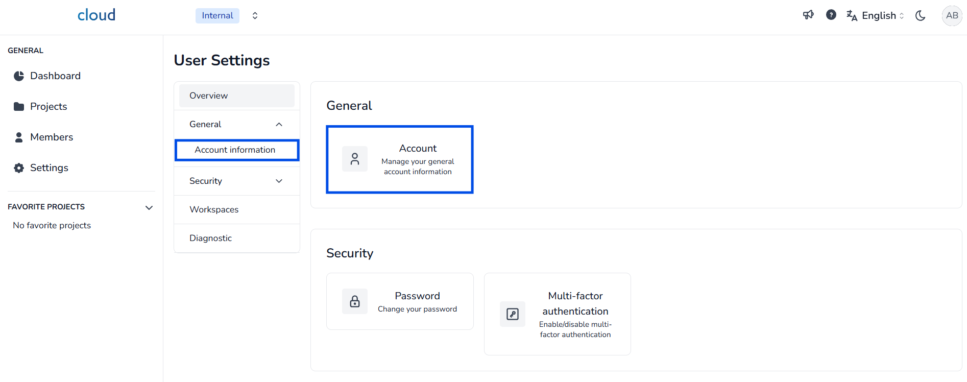 - أو بالنقر على عام → معلومات الحساب.