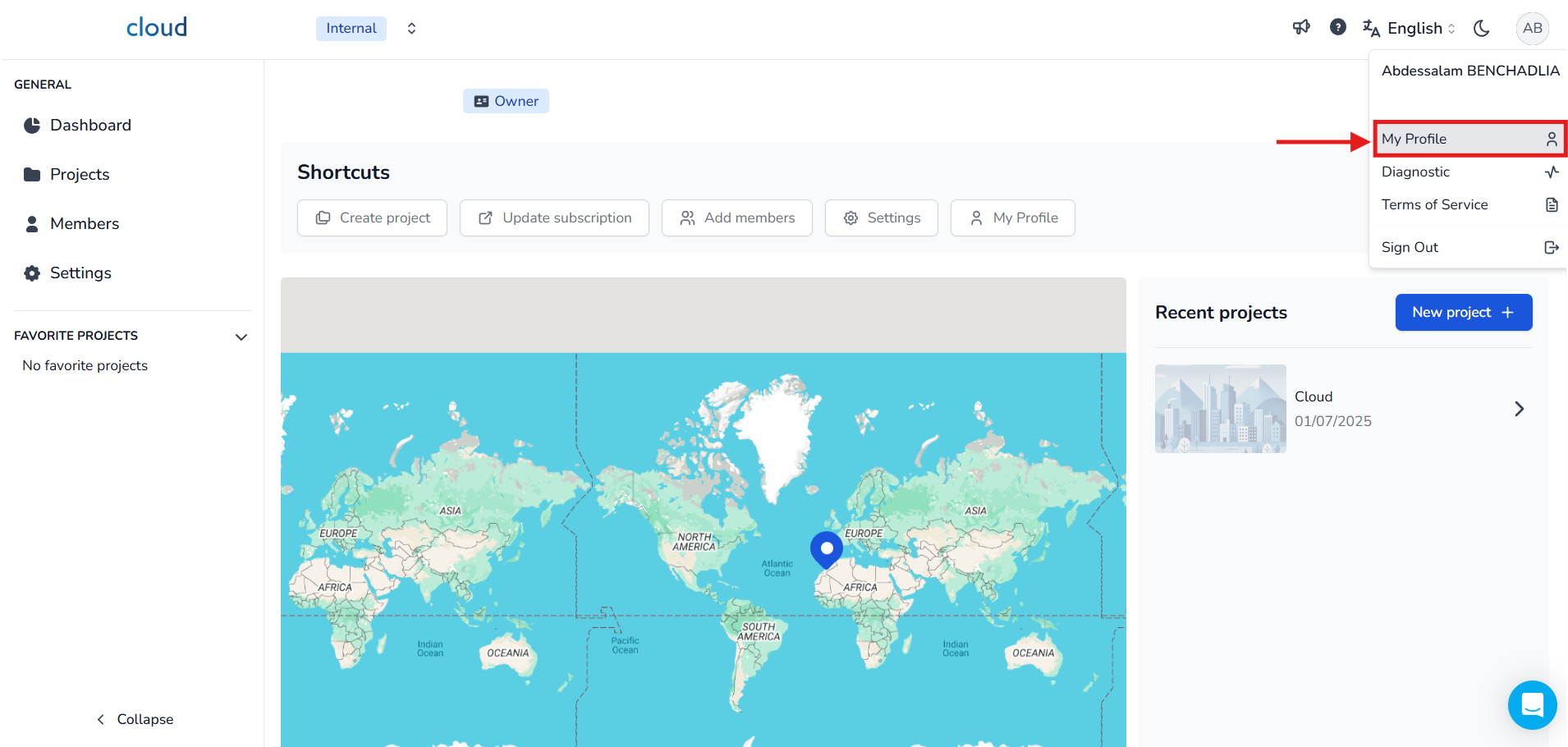أولاً، اذهب إلى صفحة ملفك الشخصي. انقر على أيقونة الصورة الرمزية الخاصة بك في الزاوية اليمنى العليا من الشاشة، ثم اختر ملفي الشخصي من القائمة المنسدلة.