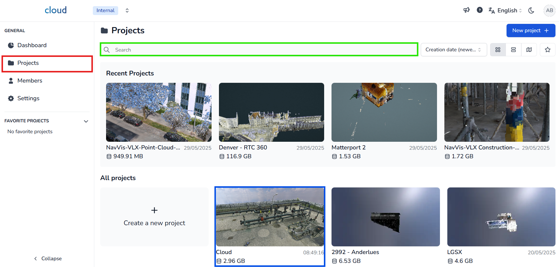 للبدء، انقر على علامة التبويب المشاريع في اللوحة اليسرى. استخدم شريط البحث للعثور على المشروع الذي تريد إضافة ملفات إليه. ثم، انقر على صورة المشروع المصغرة أو العنوان لفتح مساحة العمل الخاصة به. إذا كنت قد أنشأت المشروع للتو، فسيتم توجيهك تلقائيًا إلى صفحة التعديل الخاصة به.