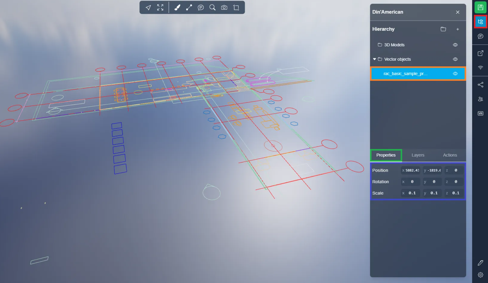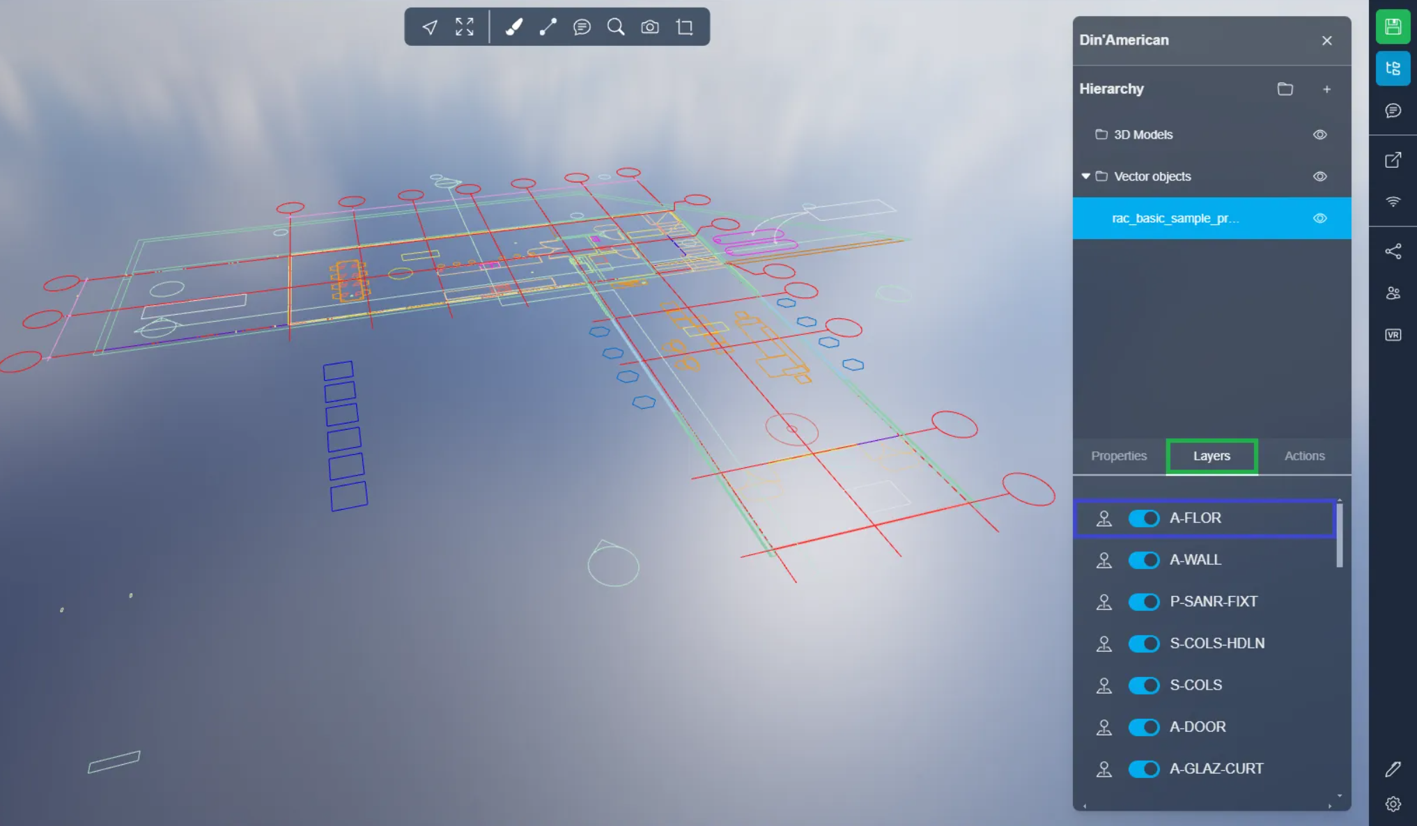 In the Layers tab, you will find a complete list of all layers contained in the DXF file. Each layer can be turned on or off individually, and clicking on a layer will access its settings menu.