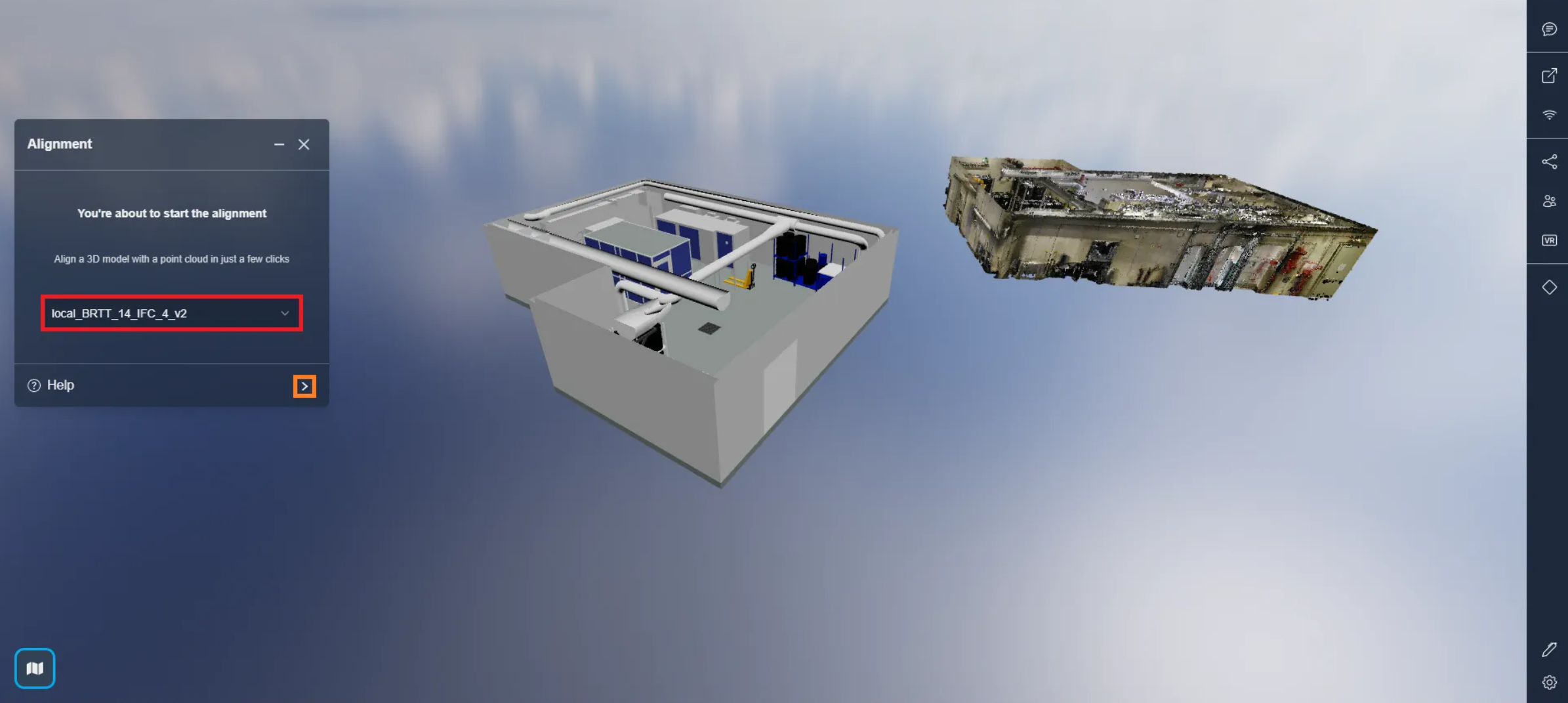 This will open a window now, you can decide to align another model if you wish, by default the model you selected in the project menu will be used. Click the arrow to proceed to the next step.