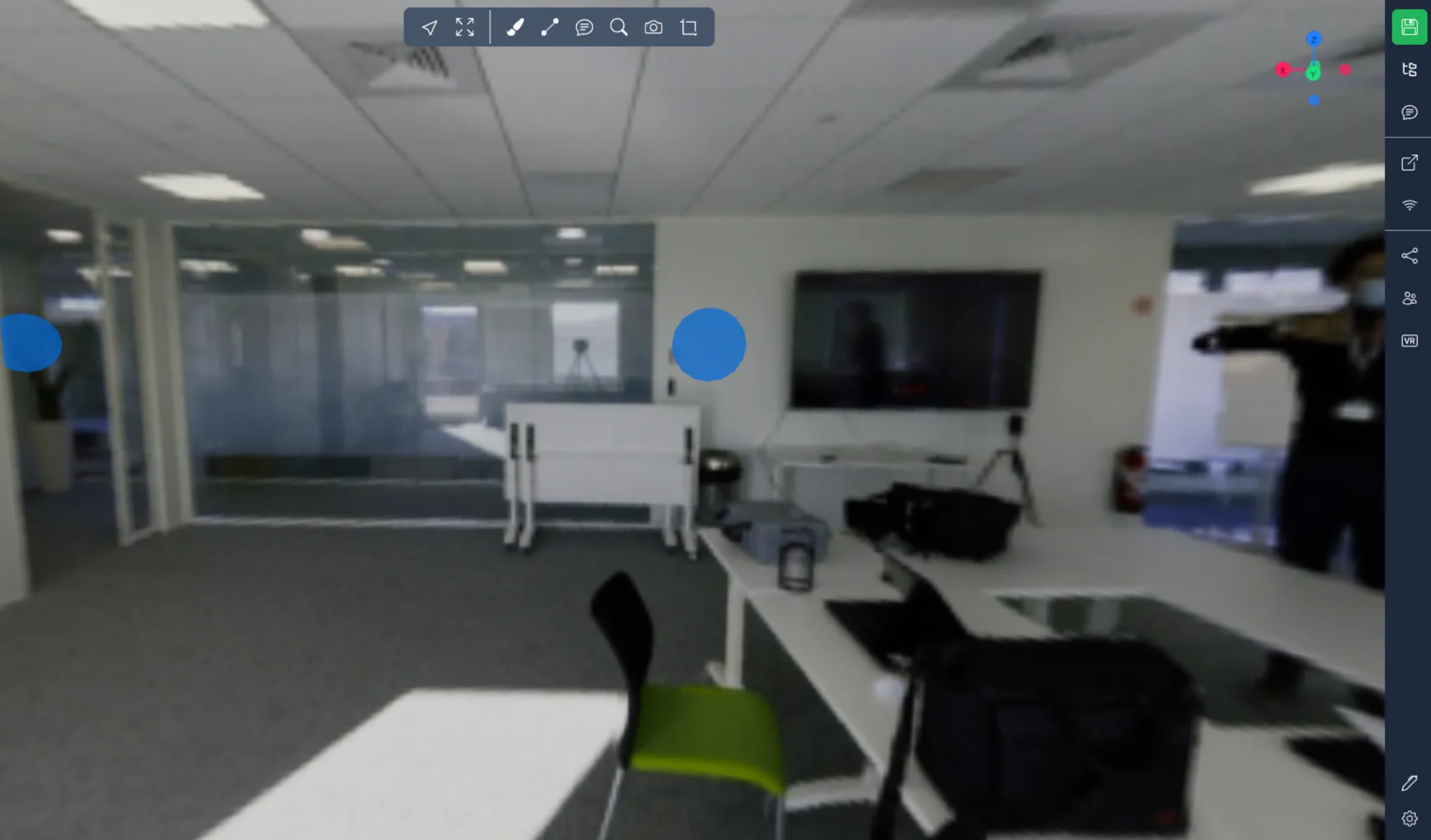 Scanners on Autodesk Revit are 3D objects inserted at the same time as the point cloud, with the difference that they are invisible by default. It allows, thanks to a manipulation, to change the camera of the 3D Application of the website. They are represented by blue bubbles on the site and by a scanner in Autodesk Revit.