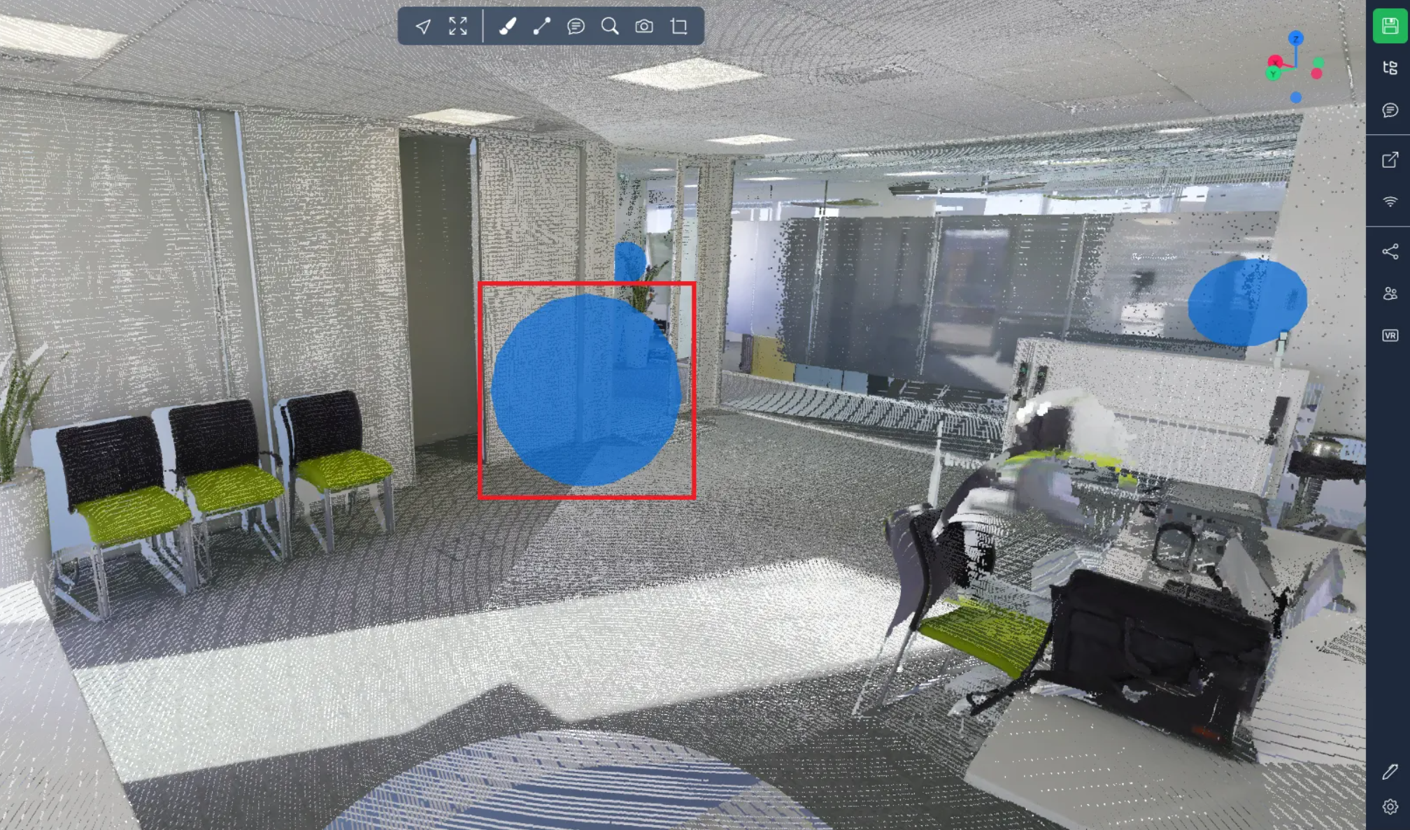 Once the connection is established, display the scanners of a point cloud, then press "Bubble Selection".