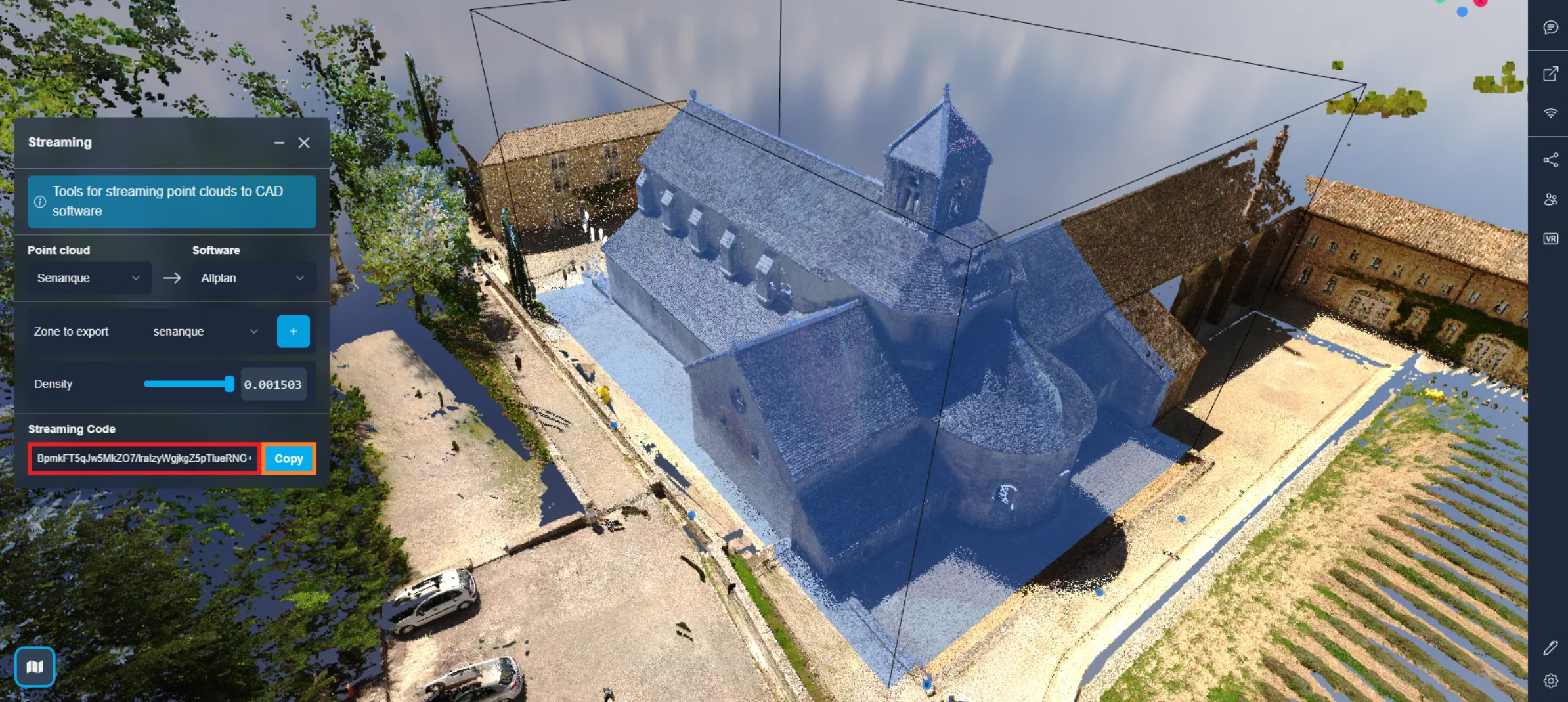 When streaming to ALLPLAN, you must use a trim box to only stream what is in that box. Select a clipping box already placed on your 3D Application or add a new one.
