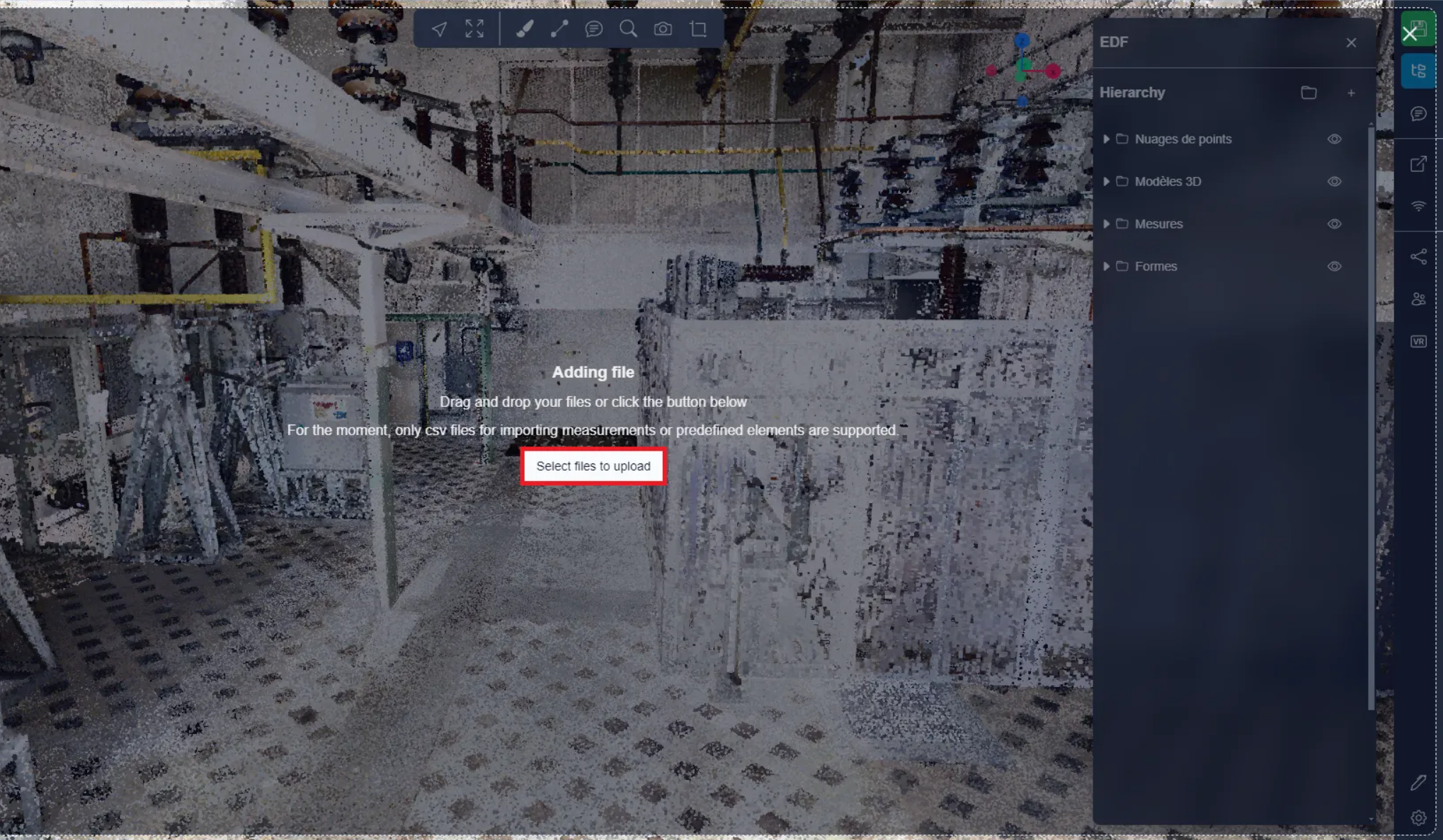On this page, you can either directly drag your CSV file or click on the button to open the explorer. You can also drag the CSV file directly over the 3D Application without using the importation menu that we saw just above, this will take you directly to this stage.