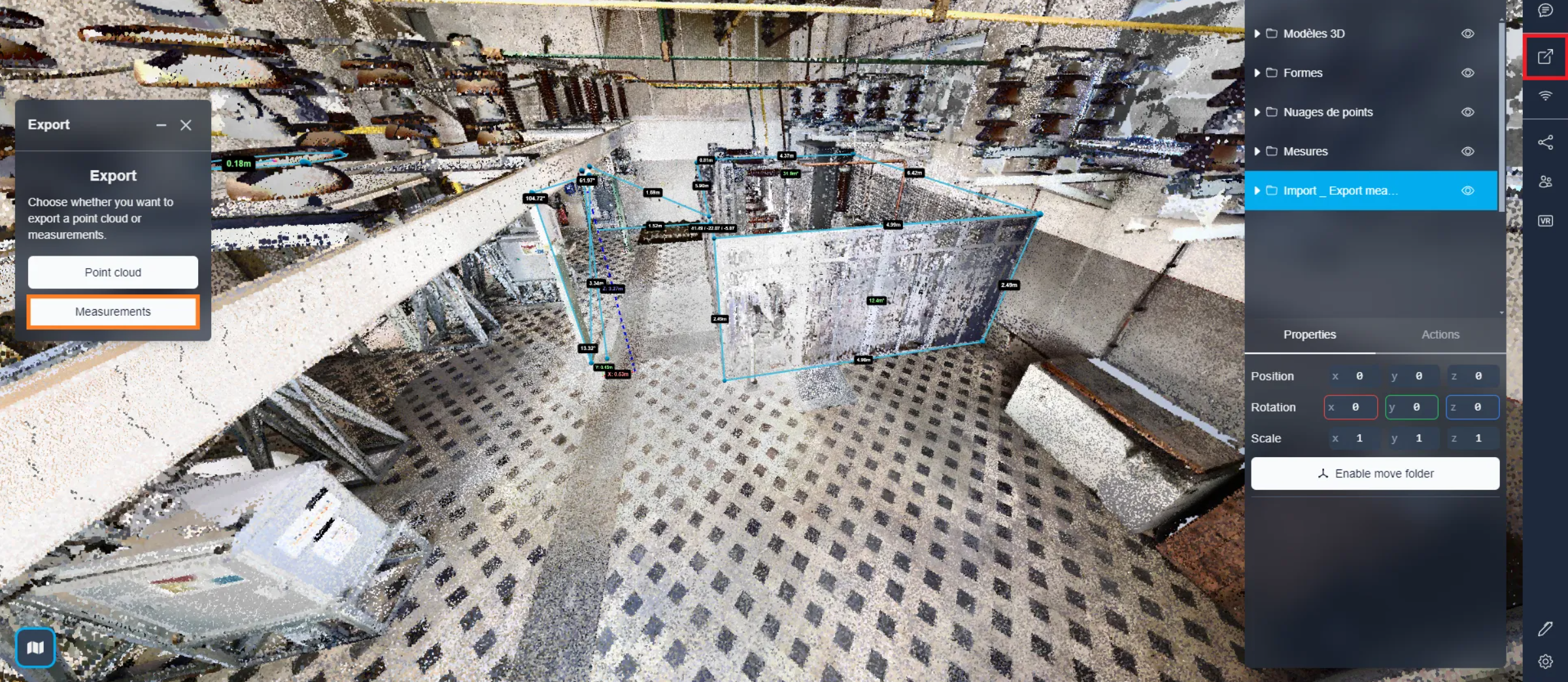 You can export measures in a CSV file if needed. To do so, open the export menu and select “Measurements”.