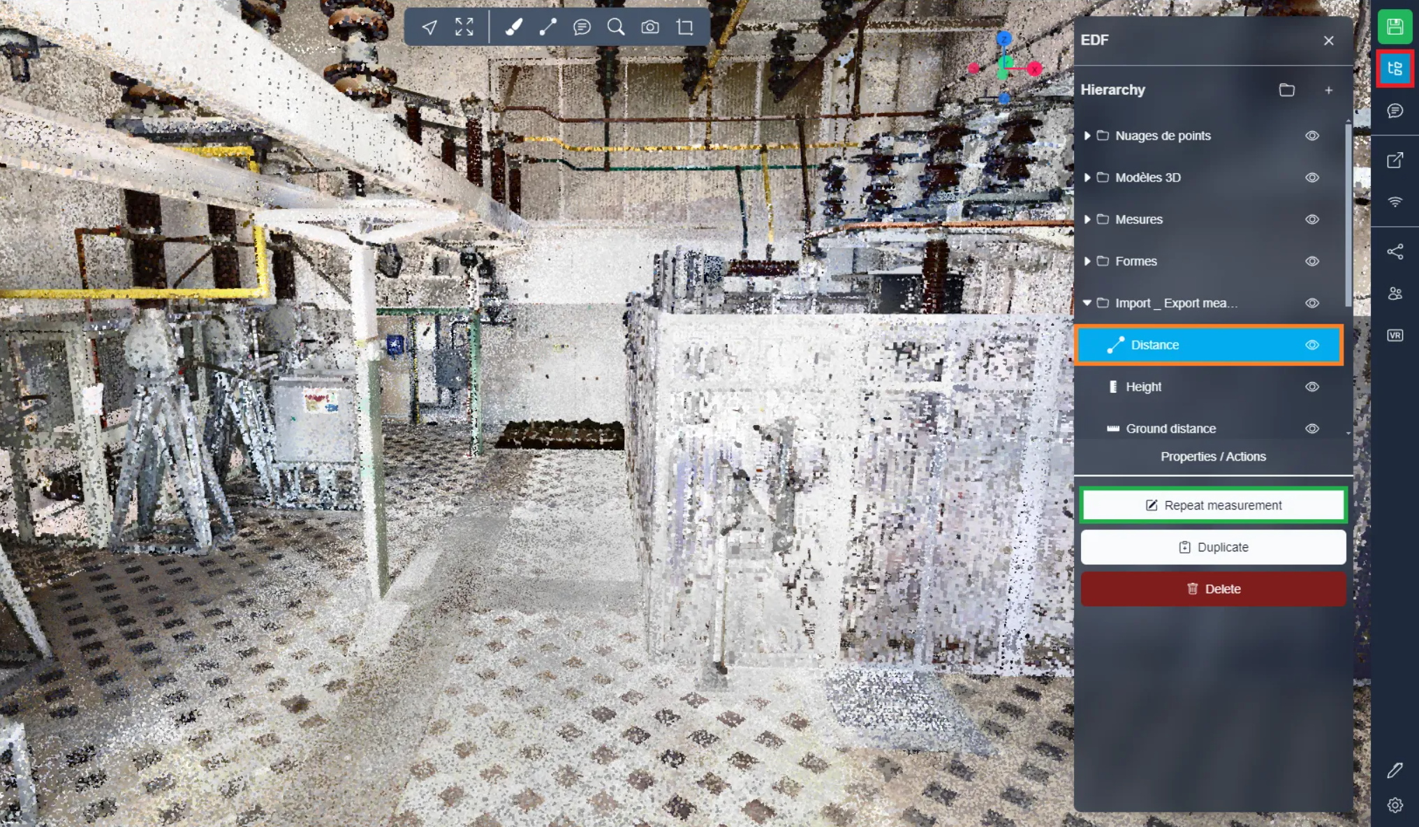 Once an empty measurement has been imported, or if you wish to edit a full measurement, you can open the project menu, select your measure and click on the “Repeat measurement”. This will allow you to start adding the points from that measurement, if the measure already had points, it will reset those.