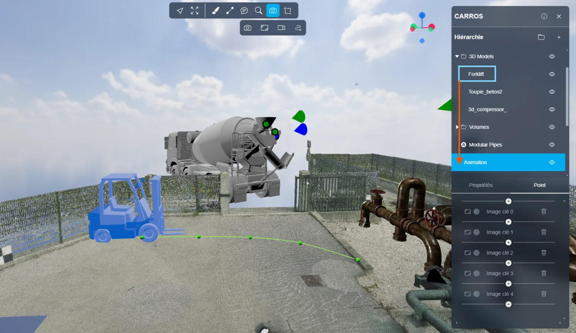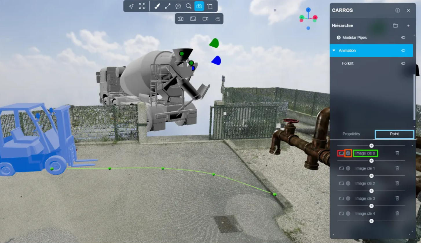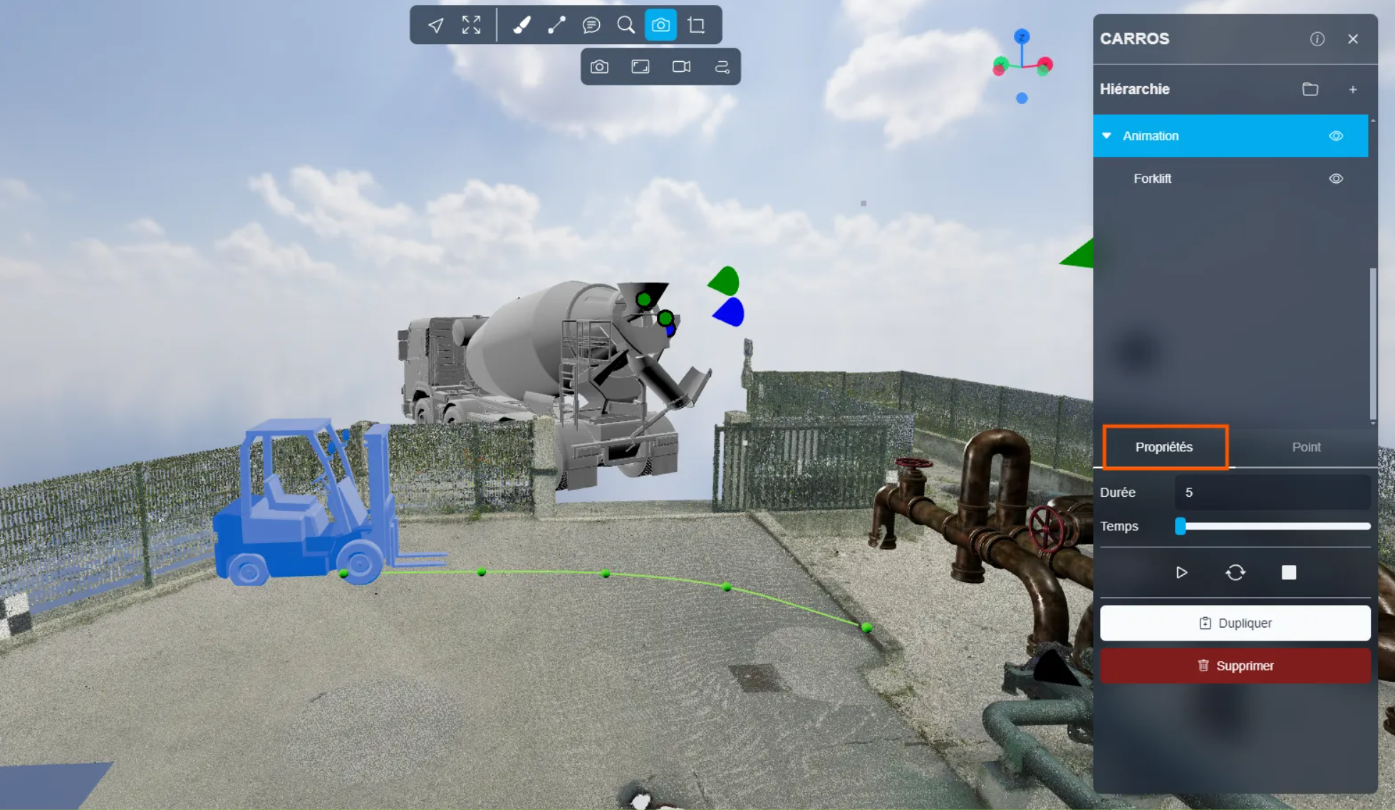 The Object Animation tool allows you to animate objects in a scene by moving attached objects along a defined trajectory. This tool is particularly useful for visualizing movements or simulating dynamic scenarios. Here is a detailed explanation of how it works: