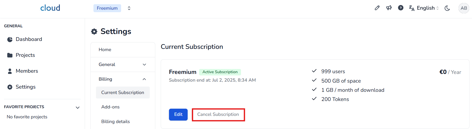 Um sich abzumelden, gehen Sie zum Abschnitt Aktuelles Abonnement und klicken Sie auf Abonnement kündigen.