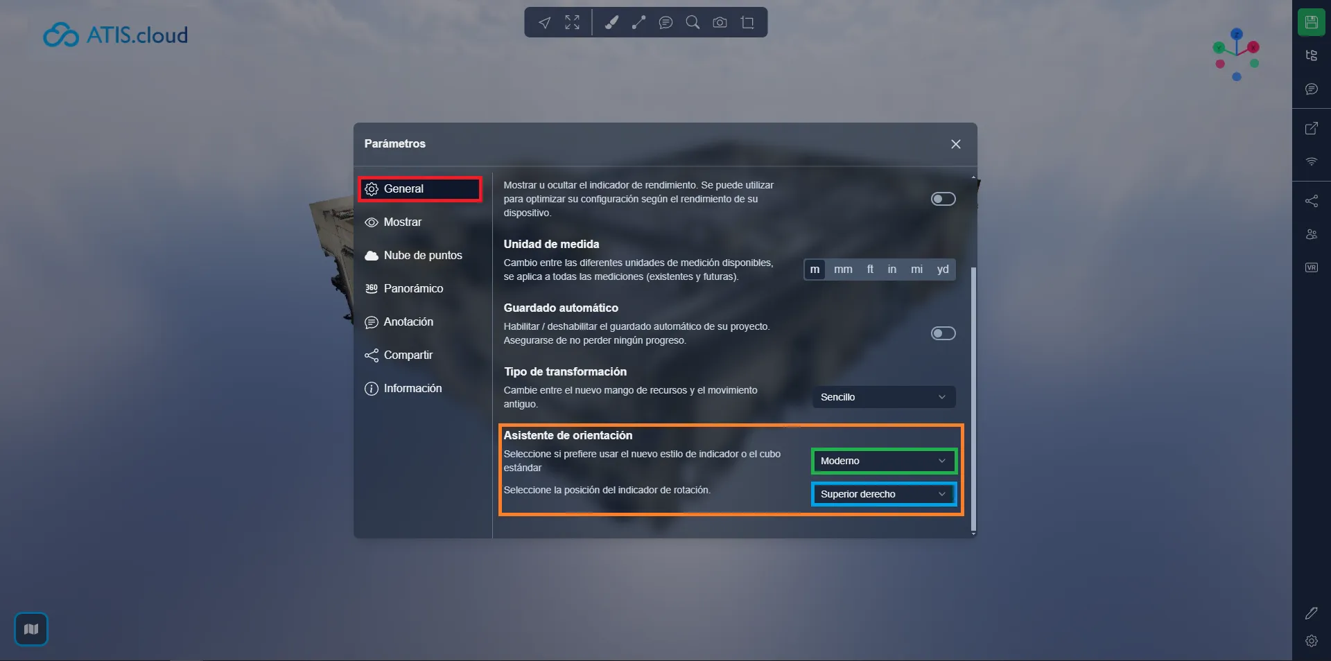 Puede activar el asistente de orientación abriendo el menú de configuración ubicado en la parte inferior derecha de su página. En la pestaña General encontrarás una opción para seleccionar el asistente que prefieras y su posición.