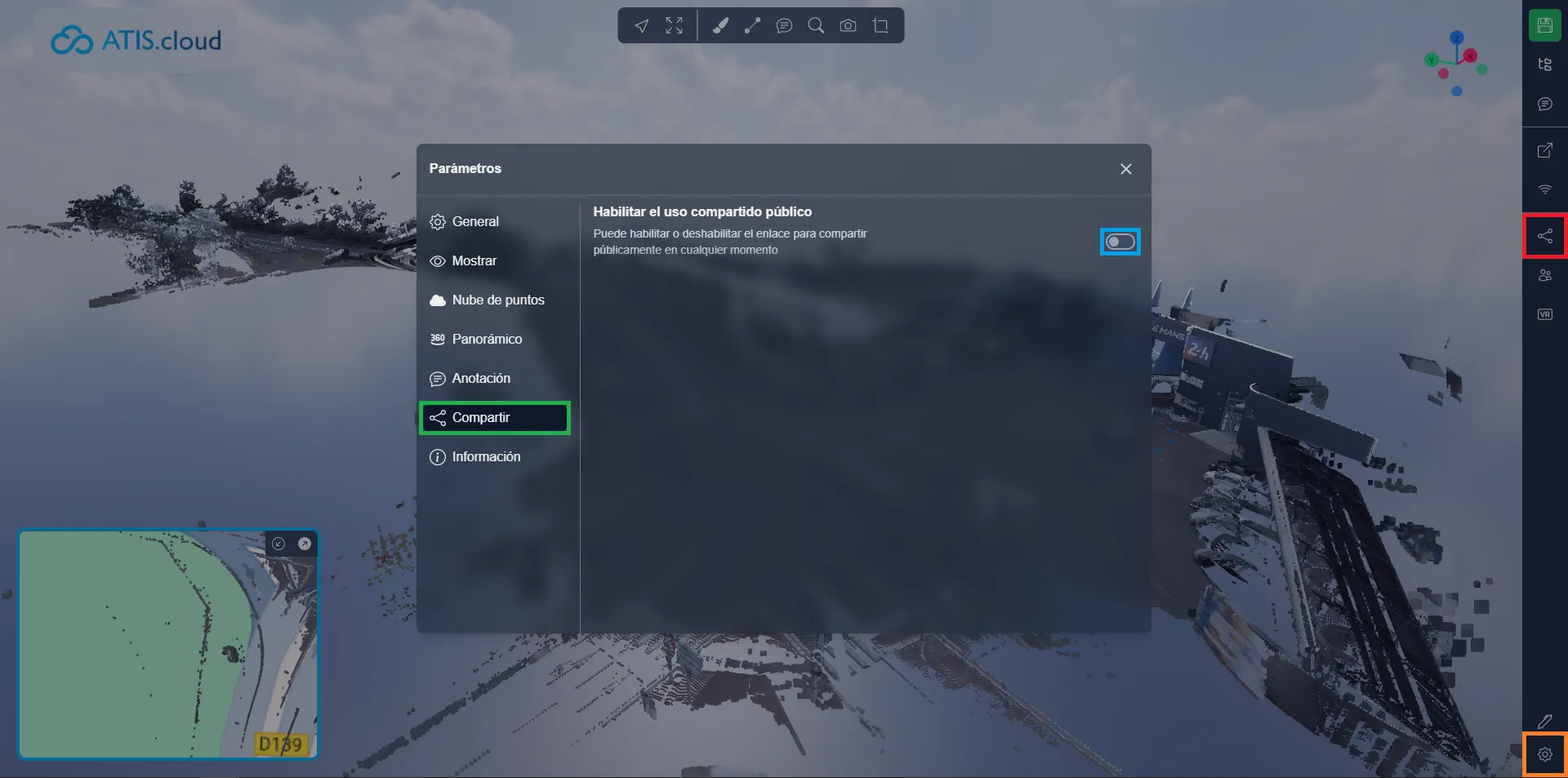 Finalmente, puedes decidir habilitar o deshabilitar el mini-mapa en el uso compartido público, deshabilitar el mini-mapa no impedirá que los usuarios lo habiliten una vez que estén en la Aplicación 3D, esta es solo una configuración predeterminada para indicar si el mapa debe estar habilitado o deshabilitado por defecto.