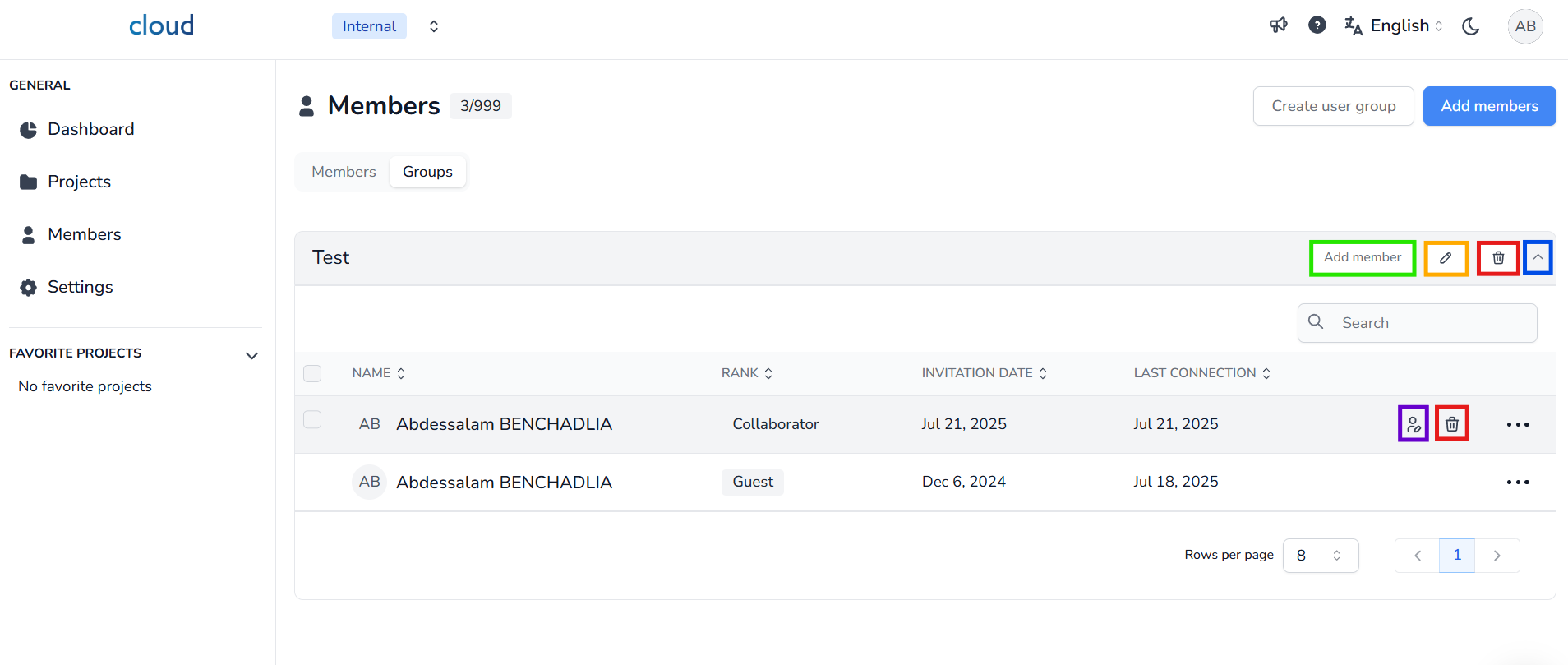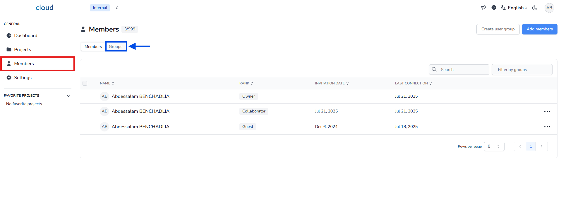Una vez creado el grupo, puedes comenzar a agregar miembros para organizar tus equipos de manera más eficiente y simplificar los derechos de acceso al proyecto: