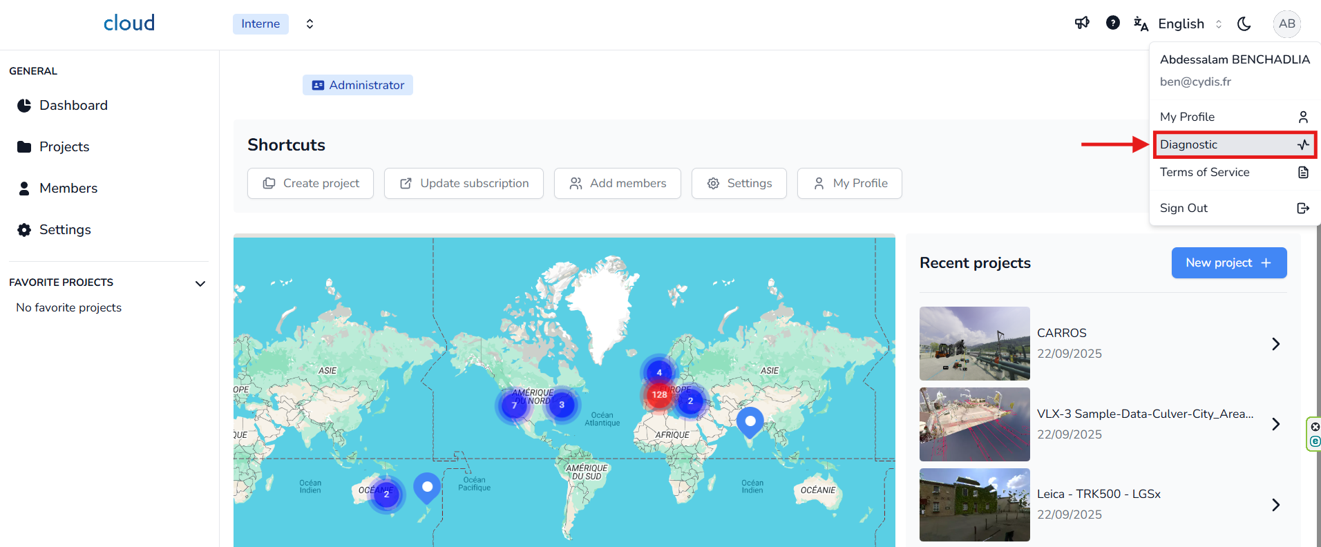 - Haz clic en Nuevo Diagnóstico para generar un nuevo informe.