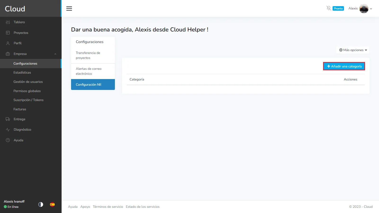 Acceso a la empresa Configuración, luego seleccione la pestaña Configuración de NE. Haz clic en el menú de la derecha y selecciona la opción de categorías.