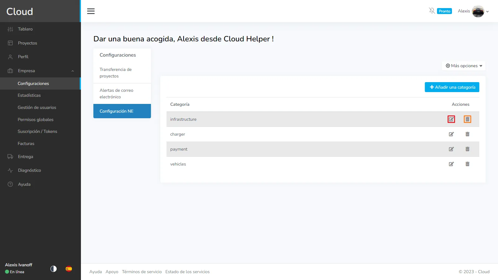 Una vez que se crea una categoría, puede editarla o eliminarla.