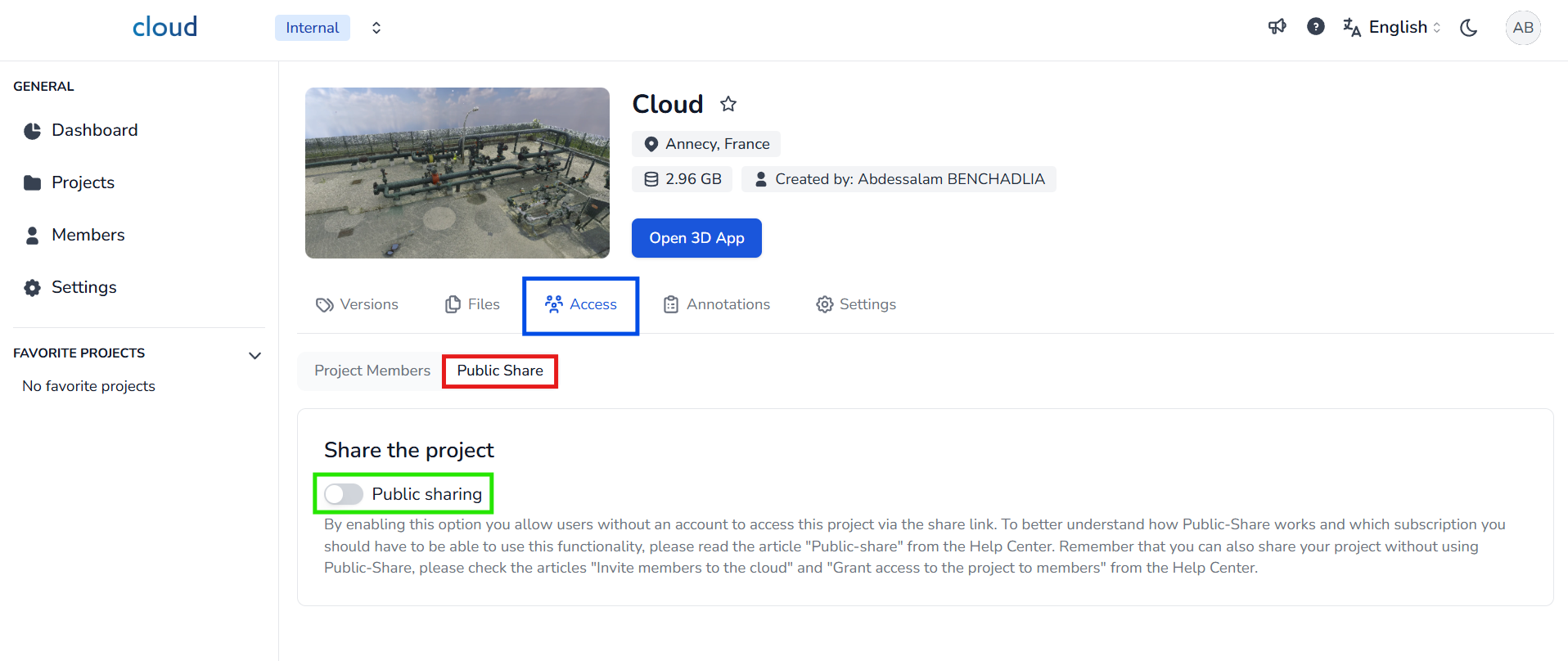 Pour utiliser le partage public, vous devez avoir un abonnement valide, cette fonctionnalité permet aux utilisateurs sans compte d'accéder à un projet via un lien public ou un code d'intégration.