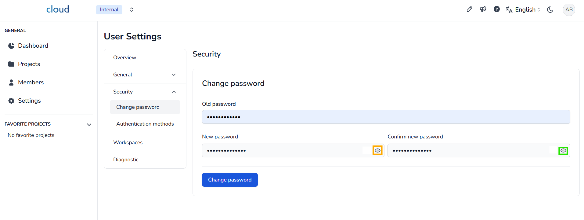 अपने पासवर्ड को बदलने के लिए, अपने प्रोफ़ाइल पृष्ठ पर जाने के लिए शीर्ष दाएँ कोने में अपने आइकन पर क्लिक करें और