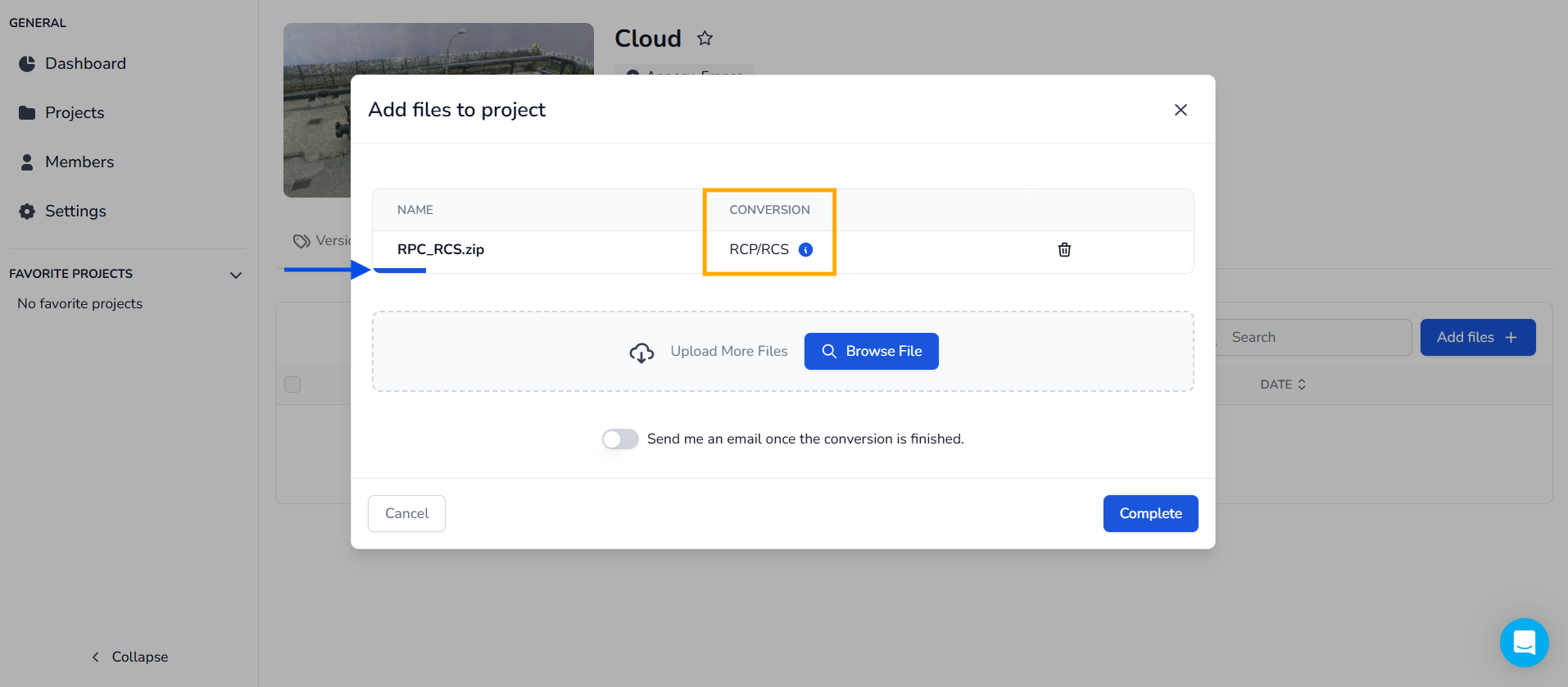 यह सुनिश्चित करें कि ज़िप फ़ाइल ठीक से संरचित है और इसमें समर्थित फ़ॉर्मेट शामिल हैं। यदि फ़ाइल वैध है, तो प्लेटफ़ॉर्म स्वचालित रूप से फ़ाइल प्रारूप का पता लगाएगा और रूपांतरण प्रकार को RCP/RCS के रूप में प्रदर्शित करेगा।