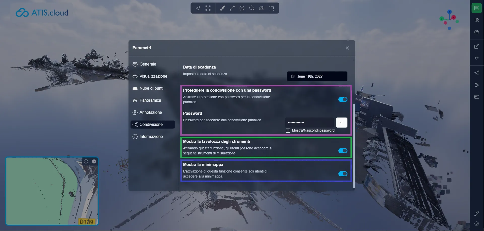 Infine, puoi decidere di abilitare o disabilitare la mini-mappa nella condivisione pubblica, disabilitare la mini-mappa non impedirà agli utenti di abilitarla una volta che si trovano nell'Applicazione 3D, questa è solo un'impostazione predefinita per indicare se la mappa debba essere abilitata o disabilitata per impostazione predefinita.