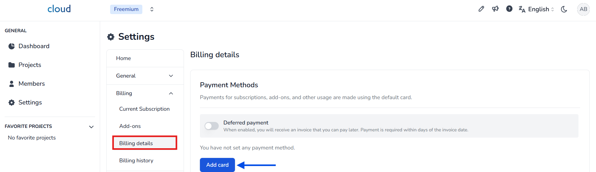 다시 청구 페이지로 돌아가면, 애드온 섹션에서 다운로드 오버플로우를 활성화하거나 비활성화할 수 있습니다.