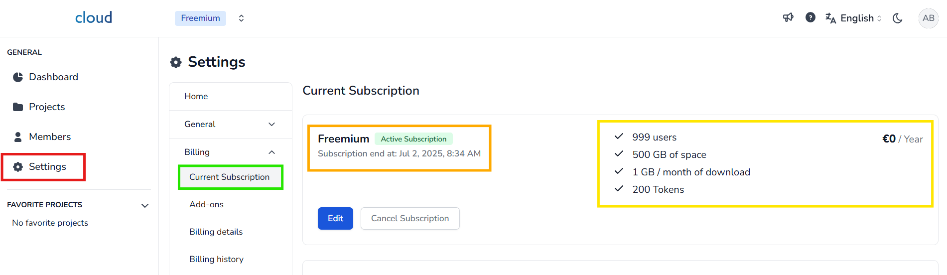 각 플랜에 대한 추가 정보는 현재 구독 섹션에서 확인할 수 있습니다.