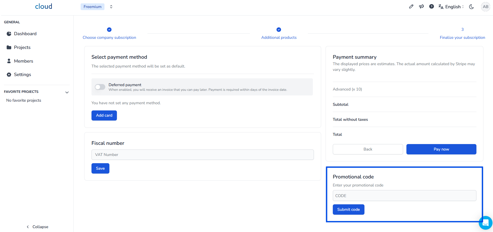 여기에서는 청구 정보를 입력해야 하는데, 이는 회사 이름, 전화번호 및 주소와 선택적으로 세금 번호를 포함하는 일반적인 필드입니다. 이는 올바른 송장을 발송하여 회계사가 사용할 수 있도록 합니다.