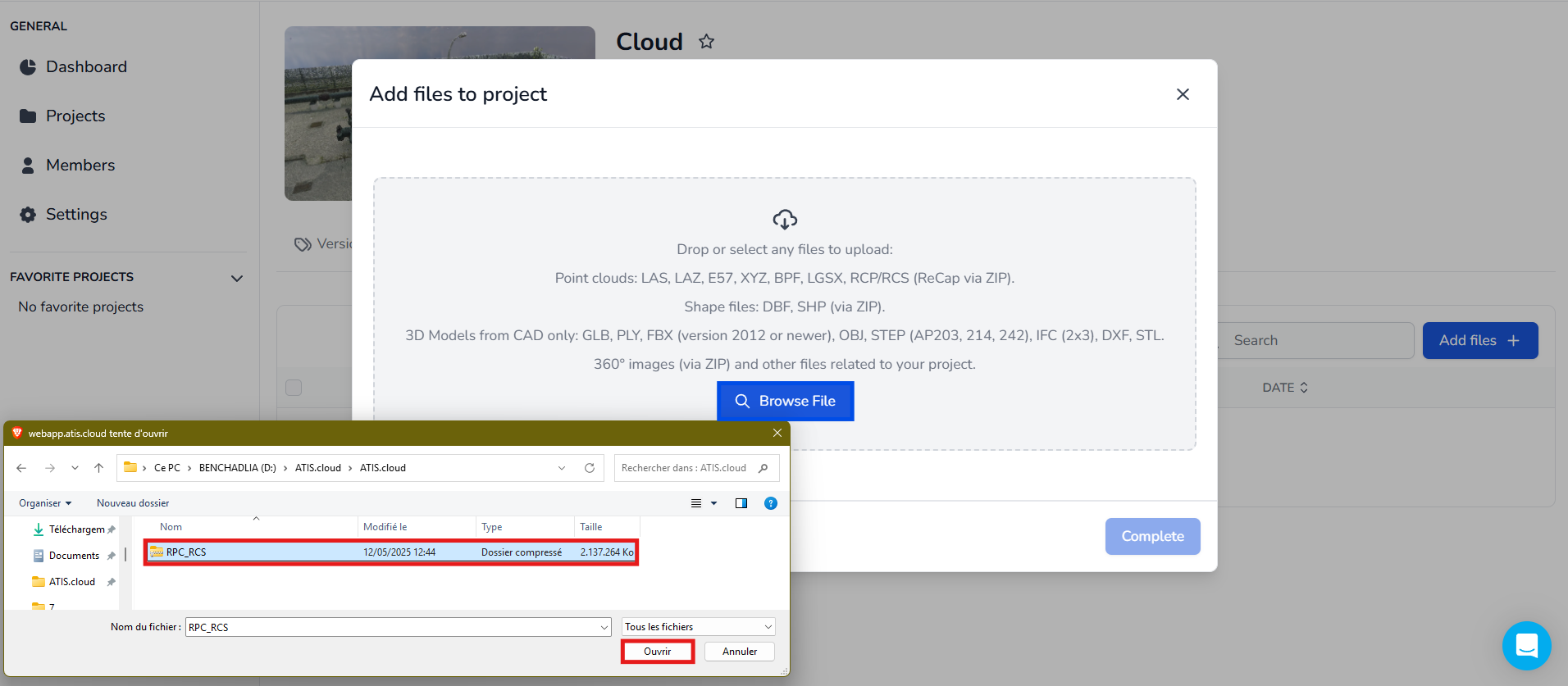 Certifique-se de que o arquivo ZIP está devidamente estruturado e inclui formatos suportados. Se o arquivo for válido, a plataforma detectará automaticamente o formato e exibirá o tipo de conversão como RCP/RCS.