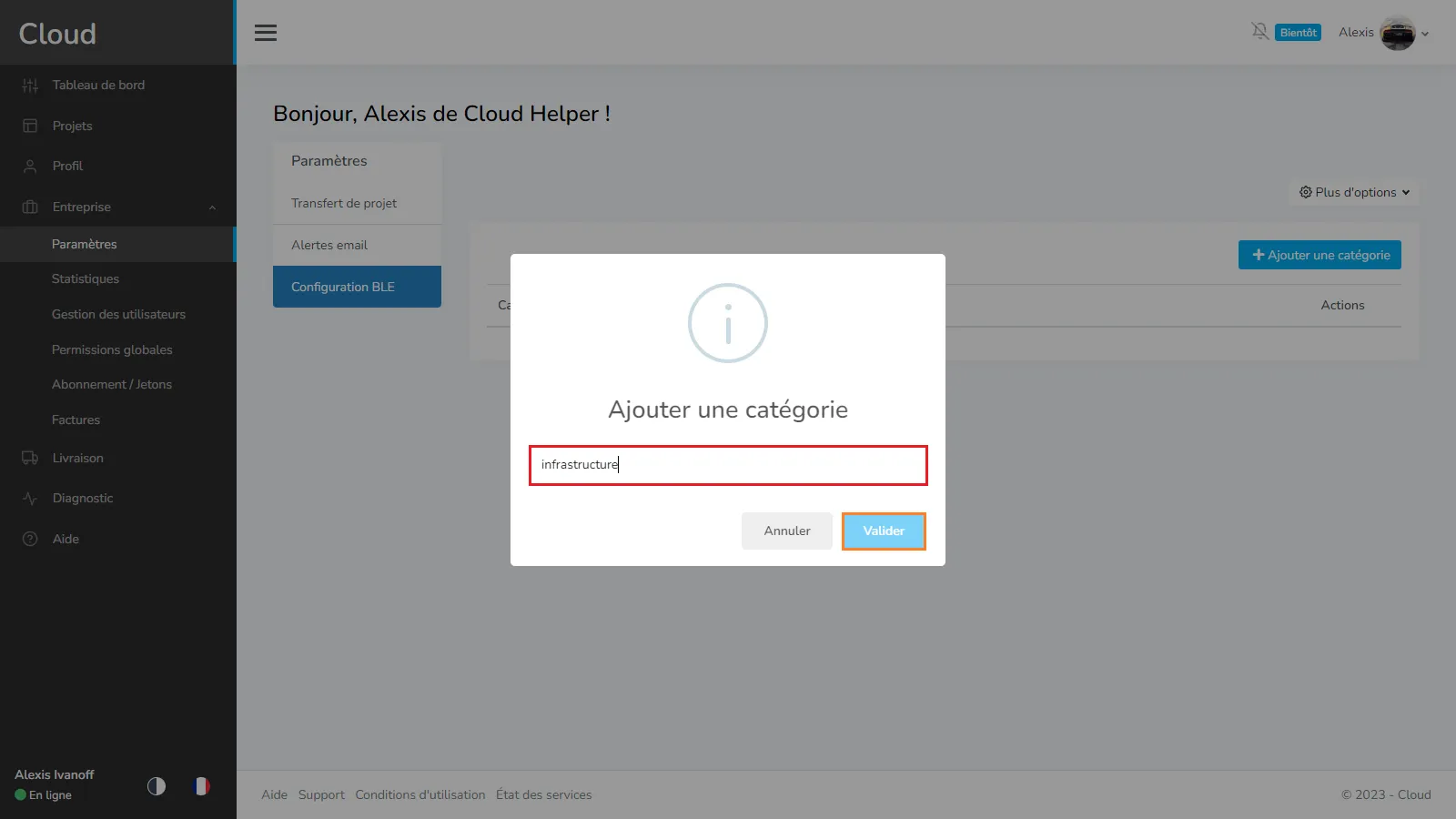 No campo de entrada, insira o nome da sua categoria e clique em validar para salvar.