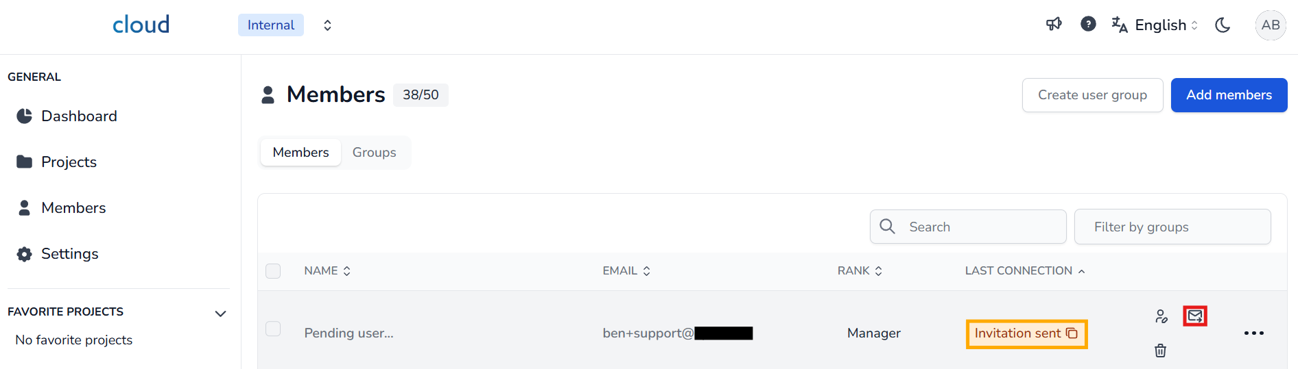 - Вы можете нажать на значок конверта, чтобы повторно отправить приглашение.