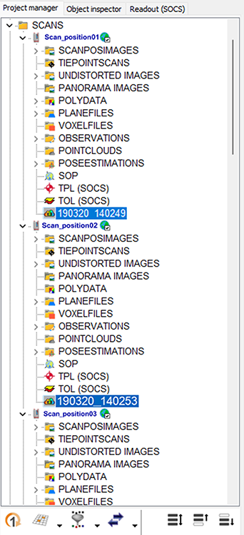 В панели Менеджера проекта разверните структуру папок под SCANS и выберите позиции сканирования, которые вы хотите экспортировать.