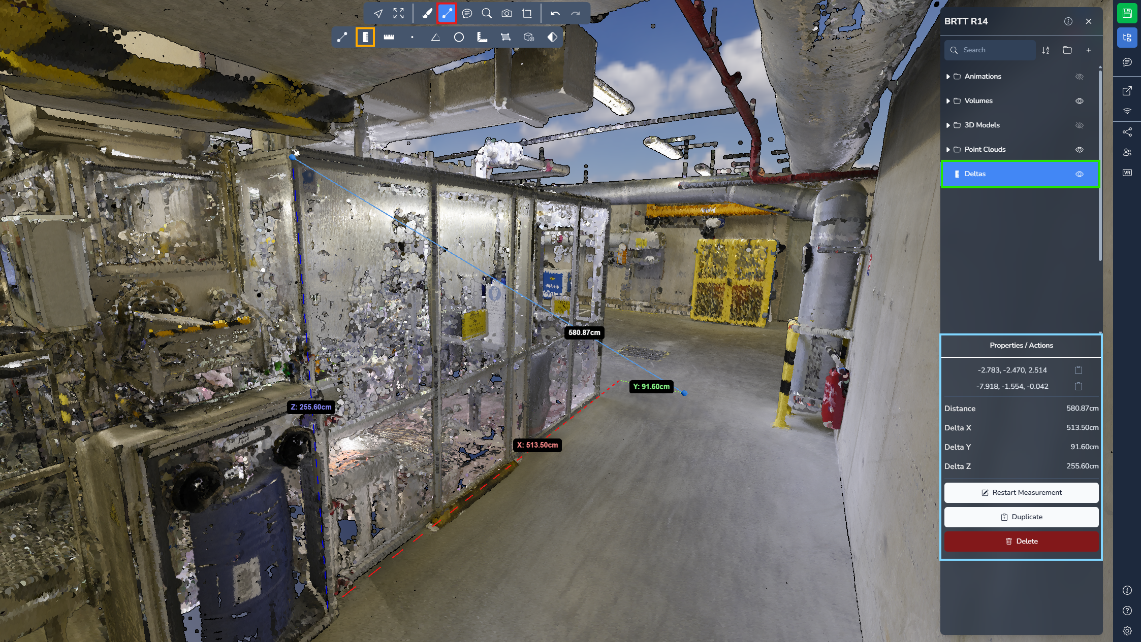 Mätningen delta låter dig placera två punkter och få både det direkta avståndet mellan dem och axelskillnaderna.