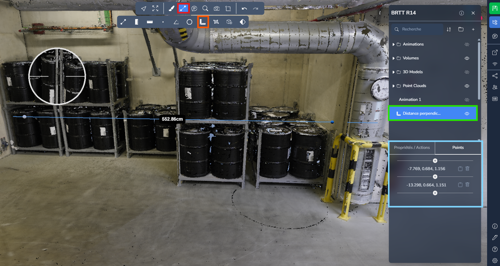 Mätningen punkt låter dig placera en enskild punkt i scenen och hämta dess exakta koordinater. Det här verktyget är särskilt användbart i georefererade projekt där exakt positionsinformation krävs.