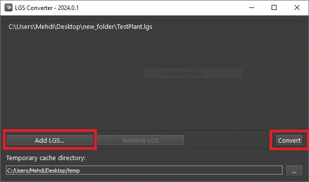 - Lägg till de LGS-filer du vill konvertera och klicka på Convert. För varje indata-LGS-fil kommer en LGSX-fil att skapas i samma katalog som indatafilen