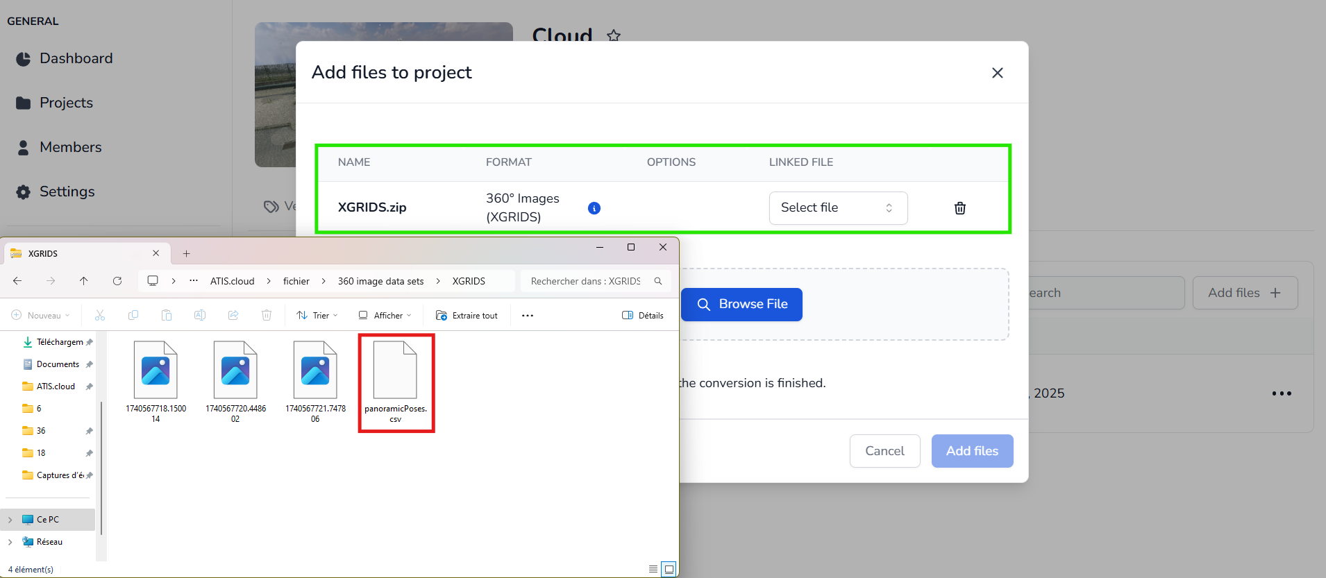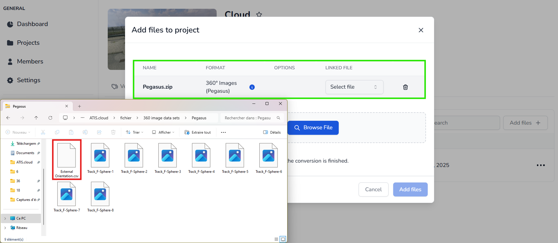 .txt-filen finns i ZIP:en, vilket är avgörande för korrekt igenkänning och bearbetning.📥 - Alternativt kan du importera en E57-fil från Faro Scene som inkluderar dina 360°-bilder. Du kan hänvisa till denna dedikerade artikel