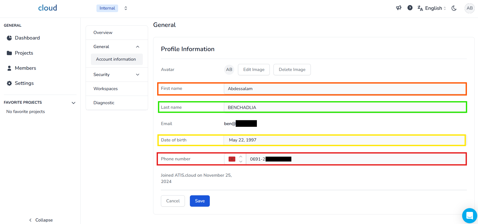 - Eller genom att klicka Allmänt → Kontoinformation.