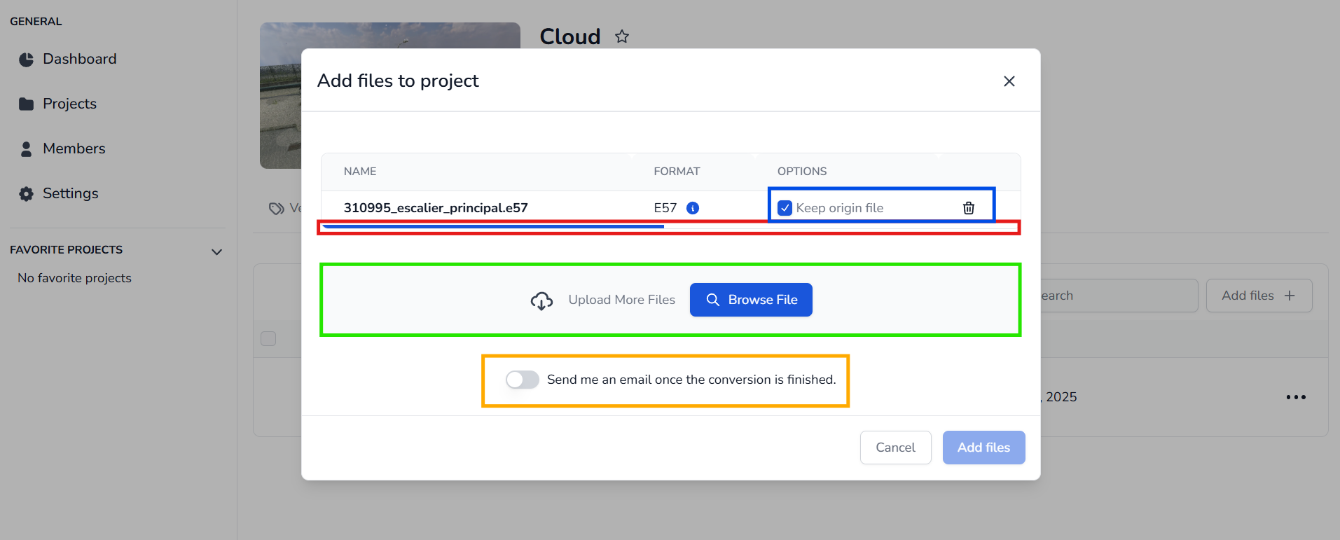 - Om du vill bli notifierad via e-post när konverteringen är klar, aktivera alternativet e-postavisering längst ner i modalrutan.