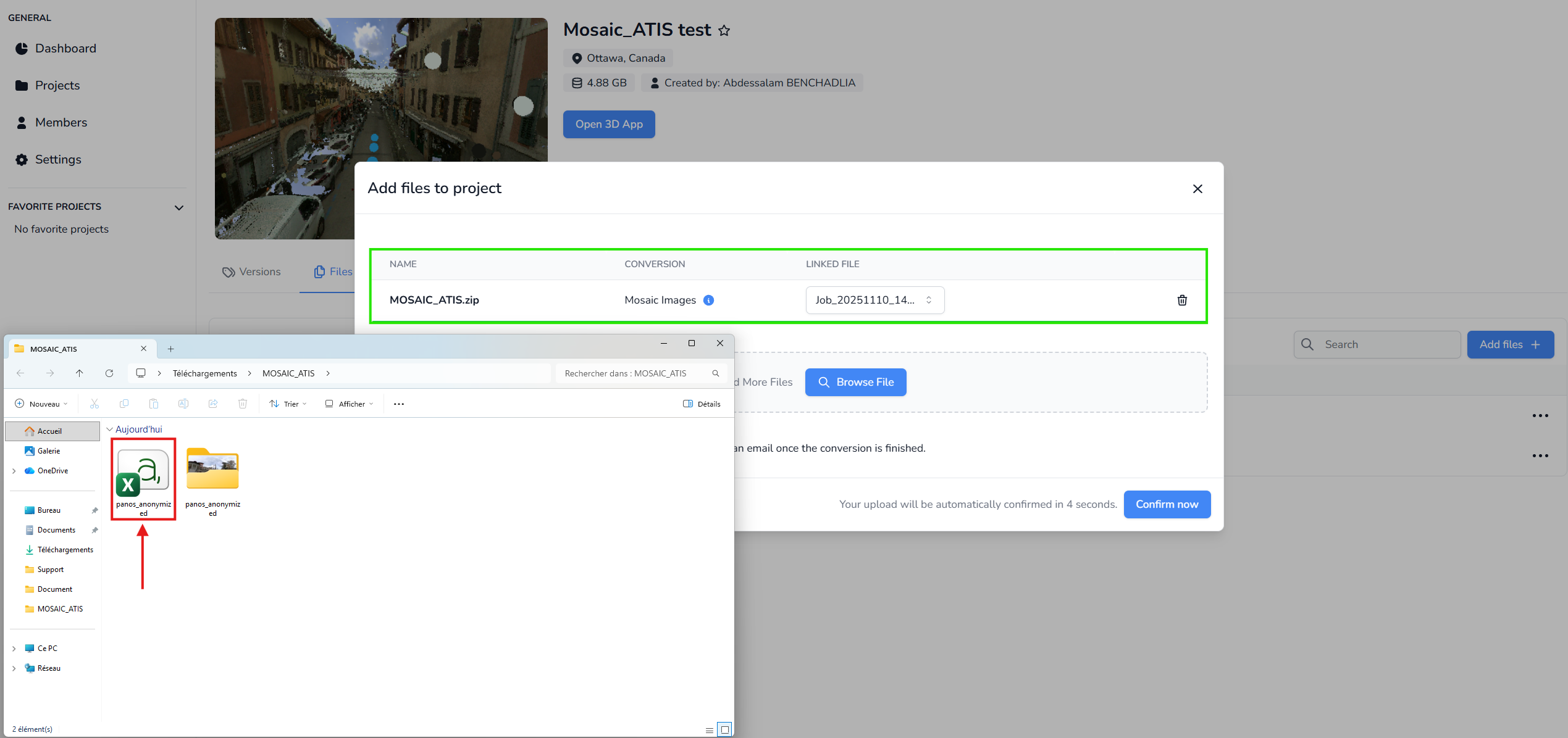📂当您的 ZIP 压缩包准备好后,将其上传到您的项目。系统将自动检测其是否源自 Trimble Realworks。请参照示例图片,确认 ZIP 包内是否包含所需的 .txt 文件,该文件对于正确识别和处理是必需的。📥