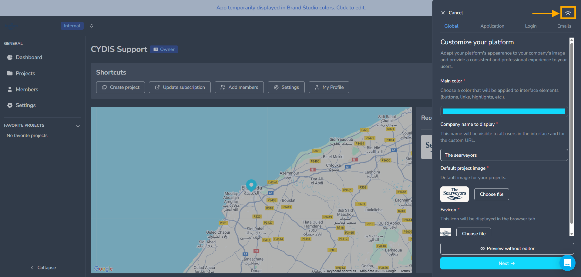 在全局选项卡中,您可以配置平台的视觉身份: